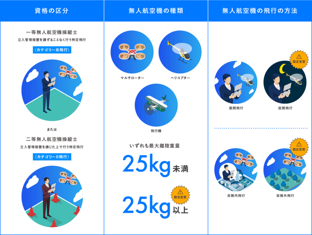 「一等無人航空機操縦士」と「二等無人航空機操縦士」の2つに分けられます。